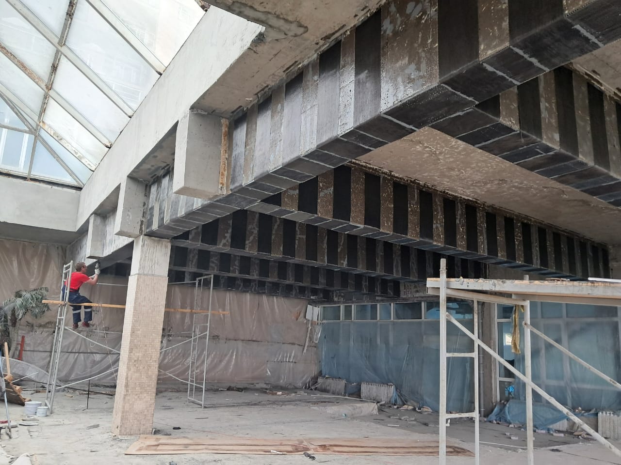 Проведение комплекса исследований, устранение ржавчины и разрушений жб конструкций, усиление композитными материалами, инъектирование эпоксидными смолами